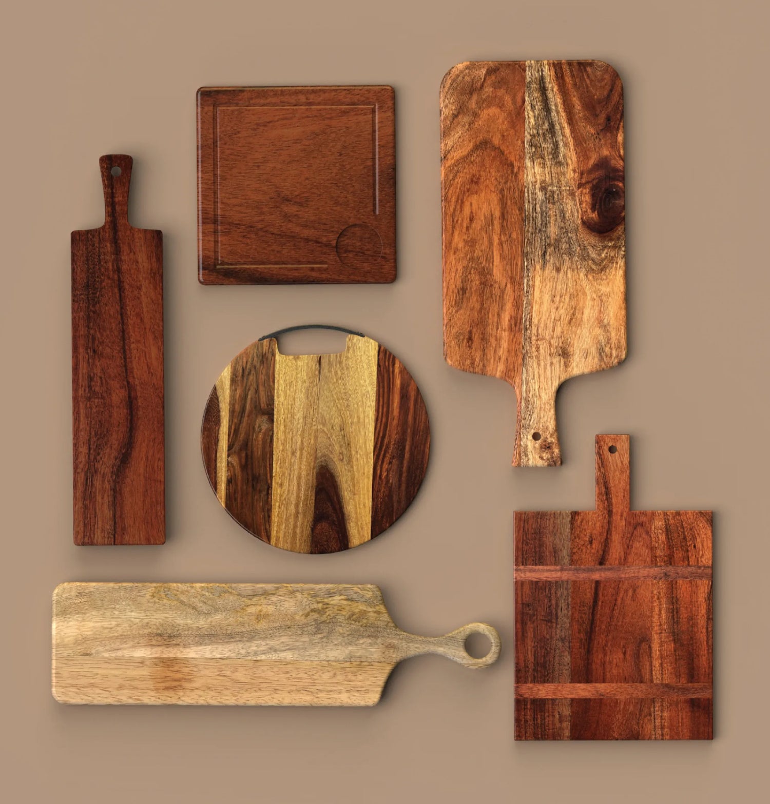 Shop the widest collection of single-piece wood cutting boards and other premium wooden products for your home and kitchen. Our unique crafting process uses no colors, no chemicals, and no varnish. Each product is seasoned with food-grade mineral oils and natural beeswax, ensuring the most natural form of wood for your kitchen.