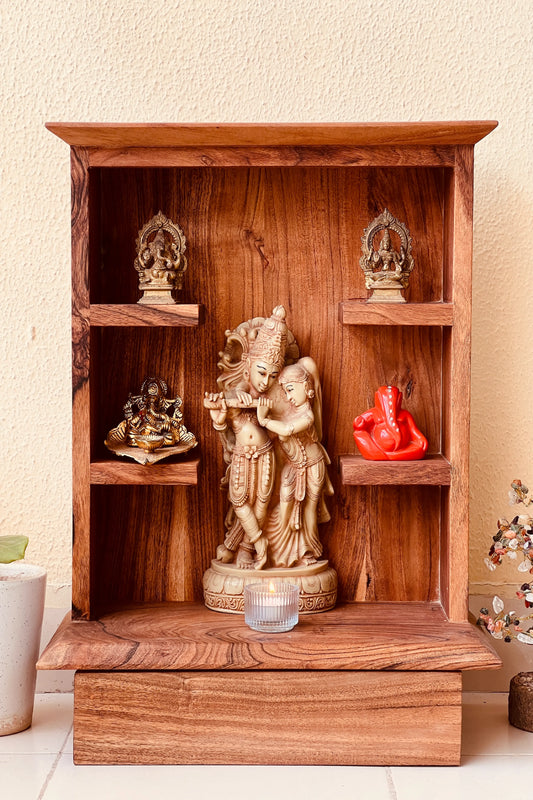 Solid Acacia Wood Elegant Pooja Mandir / Temple for Home & office with Drawer