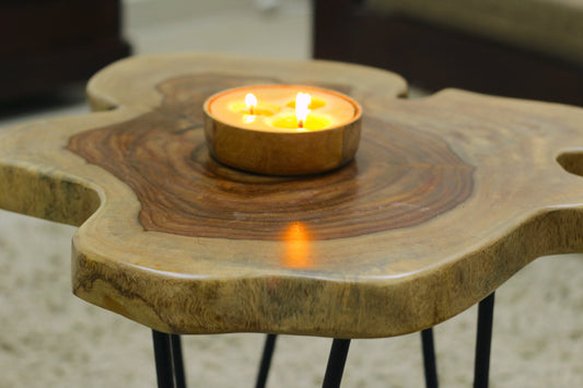 Live Edge Side Table | Sheesham Wood with Hairpin Legs (18 inch Diameter * 18 Inch Height)