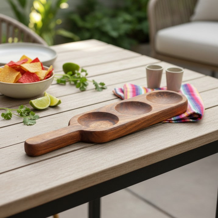 Premium Acacia Wood Triple Dip & Condiment Serving Platter